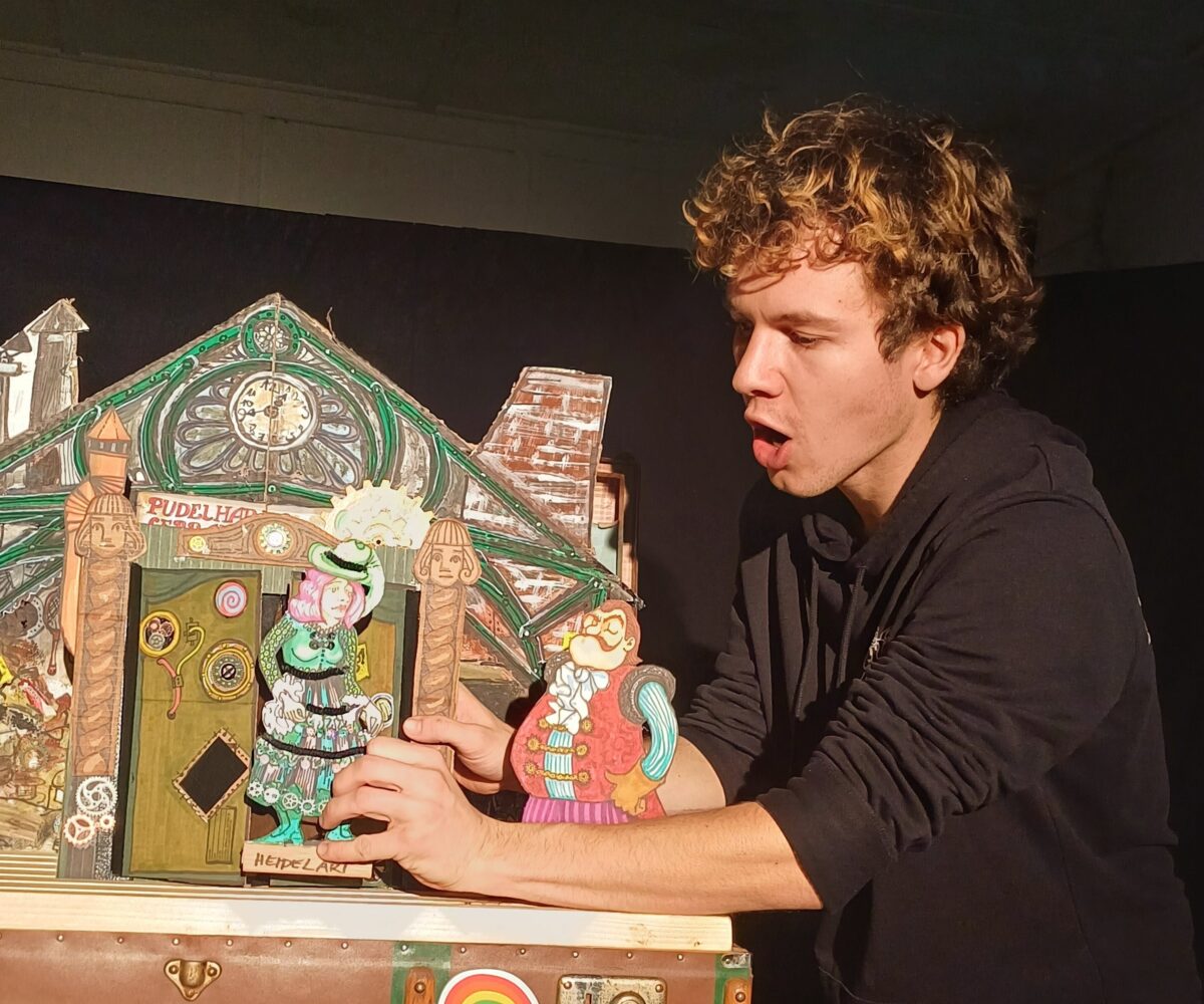 … Ich bin nun mal einer, der sich einfach nicht fürchtet, vor gar nichts... Toni soll einen Beruf erlernen, aber alles was er können will, ist es, sich zu gruseln. Mutig ist er keineswegs, er ist einfach zu dumm, um sich zu fürchten. Weder ein als Gespenst verkleideter Geistlicher, noch ein Werwolf oder ein ganzes Spukschloss können ihm das Gruseln beibringen. Auf seiner eigenen Hochzeit aber erschreckt er sich ganz gewaltig und ist darüber überglücklich. Die Kinderbühne Hellriegels Koffer öffnet ihren Deckel für einen Grimm-Klassiker. Mit kindlichem Charme und auf moderne Weise interpretiert, begeistern Toni und nicht zuletzt ein Haufen Gespenster, Skelette und Werwölfe das Publikum.