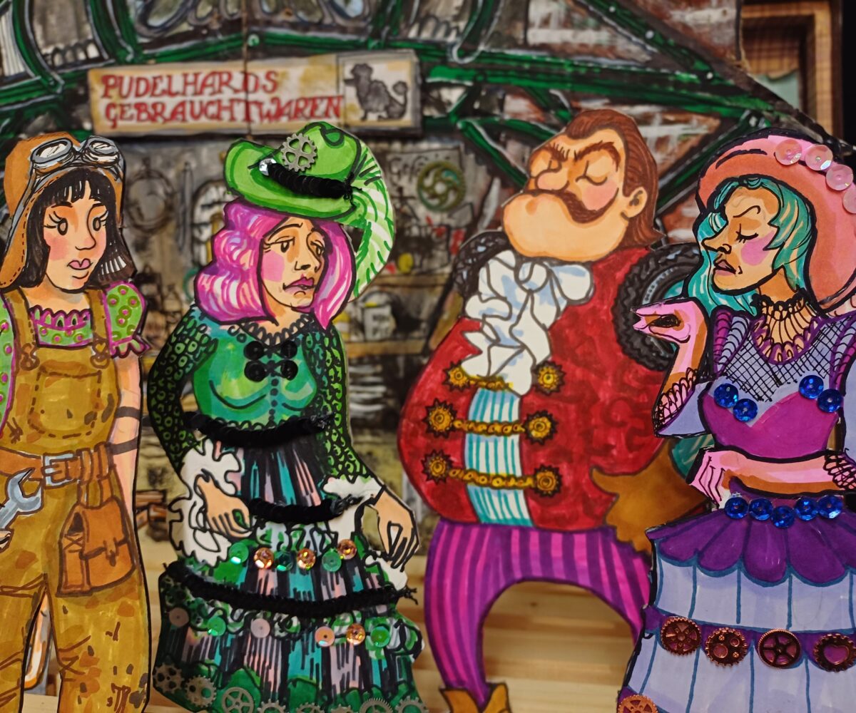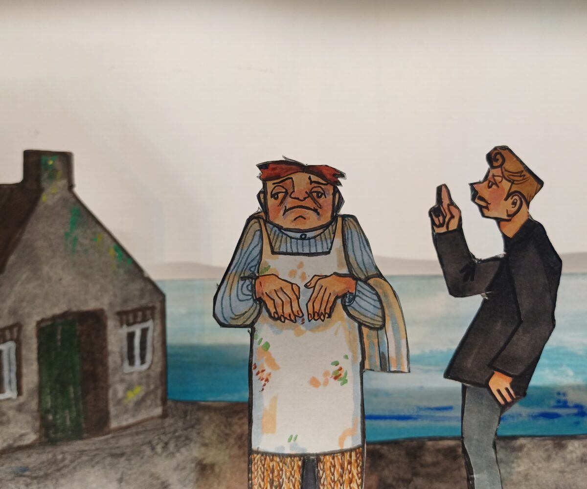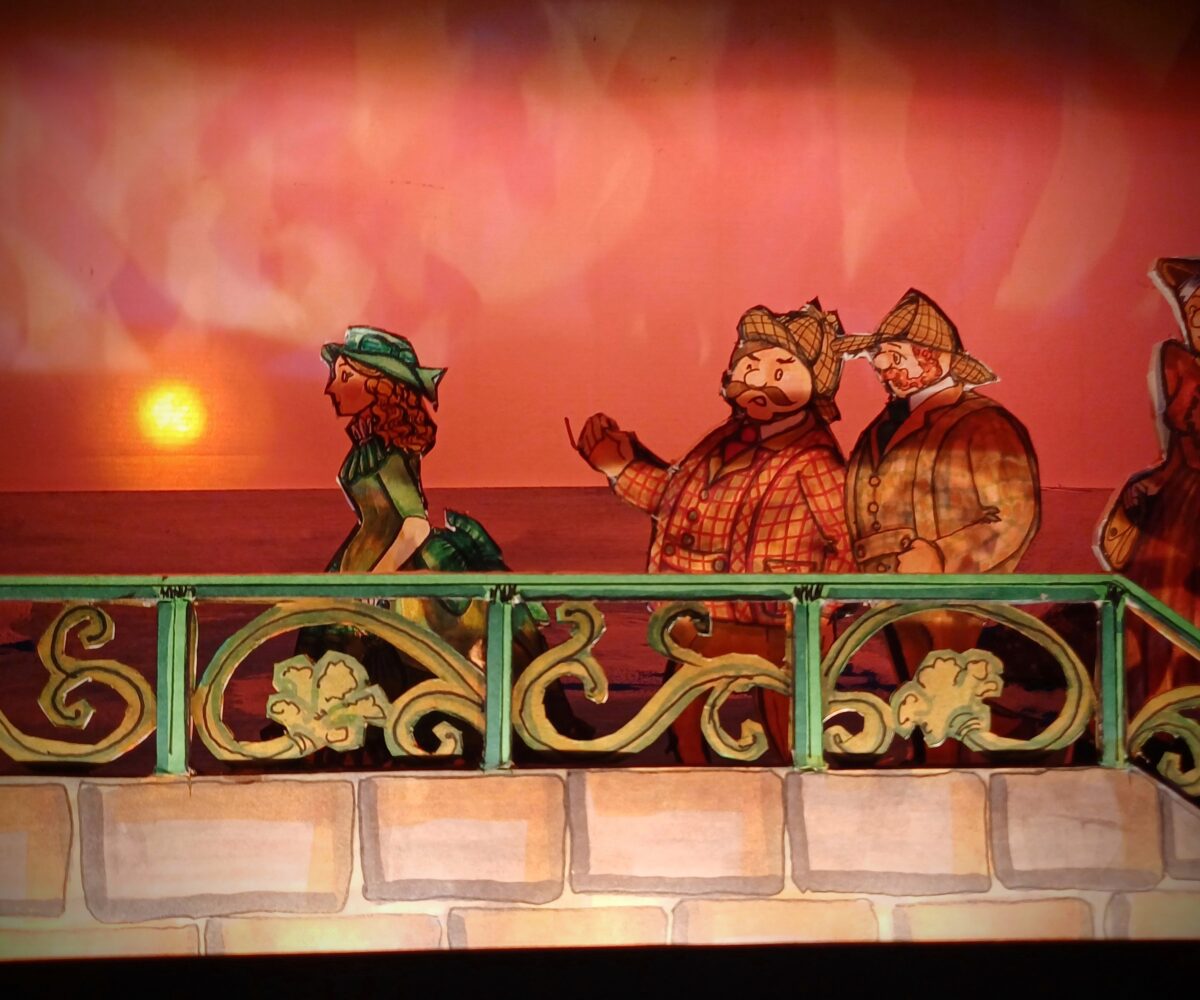 ...In Bollerup, einem Dorf an der Ostsee, heißen nur wenige Leute anders als Feddersen... Jens Otto Feddersen, genannt der Dorsch, ist der letzte Bauer des Dorfes mit einem Pferdegespann. Als ein Freizeitjäger ihn beim Mähen stört, kommt es zu einem dramatischen Zwischenfall. Einige Tage später wird der Dorsch selbst von einem aufdringlichen Fischverkäufer gestört und im Winter stört es Franz Jesper Feddersen den Nachbarn des Dorsches, das seine Holzvorräte auf mysteriöse Weise verschwinden. Aus dem Buch „Der Geist der Mirabelle“ (1975) von Siegfried Lenz hat Hellriegels Junior drei Geschichten auf die Papiertheaterbühne gebracht. Mit sprachlichem Witz, wunderbar karikierten Figuren und Livemusik werden die Eigenheiten der Bolleruper ins Bild gesetzt.