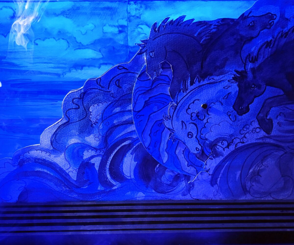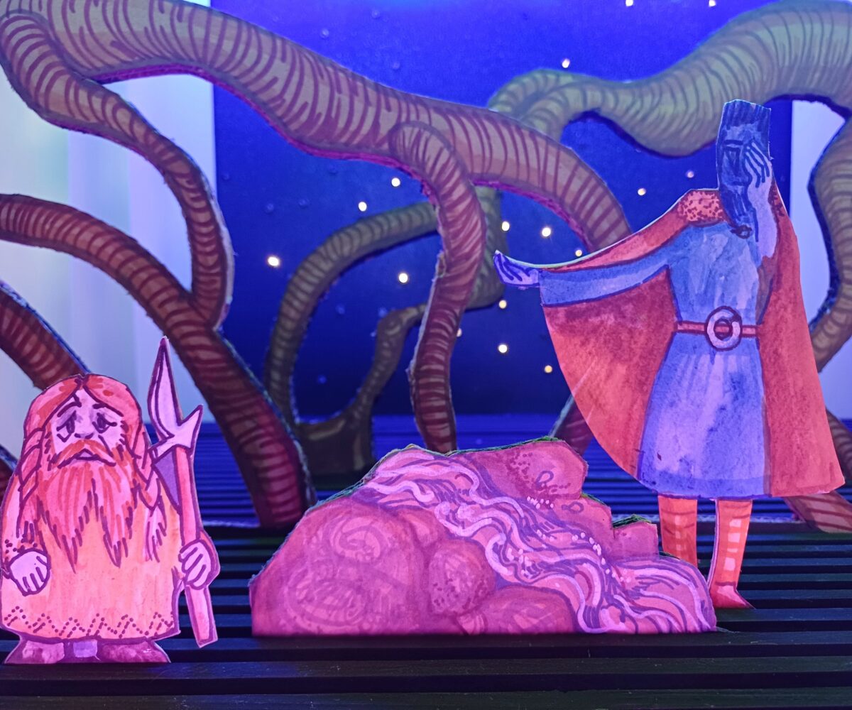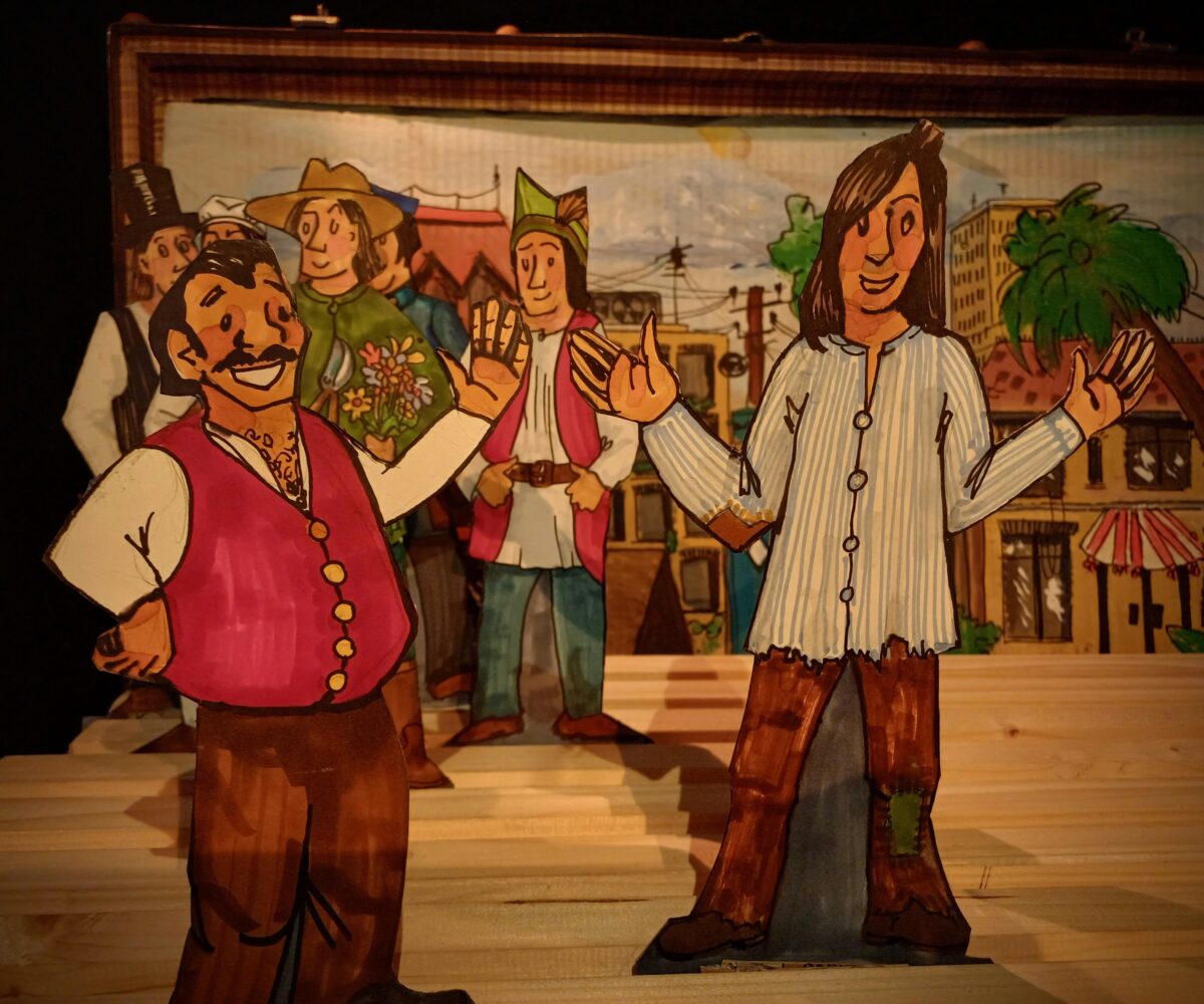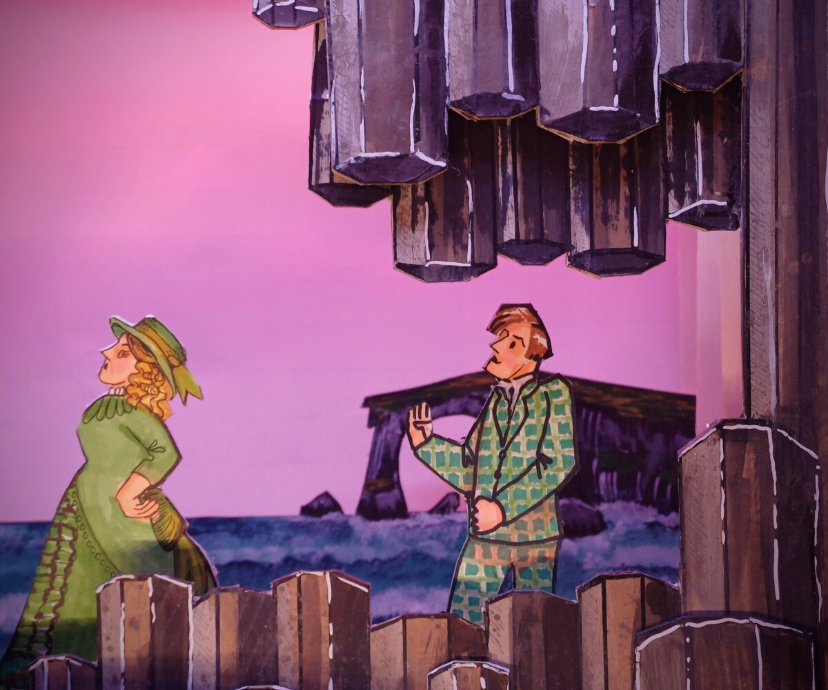 ...In Bollerup, einem Dorf an der Ostsee, heißen nur wenige Leute anders als Feddersen... Jens Otto Feddersen, genannt der Dorsch, ist der letzte Bauer des Dorfes mit einem Pferdegespann. Als ein Freizeitjäger ihn beim Mähen stört, kommt es zu einem dramatischen Zwischenfall. Einige Tage später wird der Dorsch selbst von einem aufdringlichen Fischverkäufer gestört und im Winter stört es Franz Jesper Feddersen den Nachbarn des Dorsches, das seine Holzvorräte auf mysteriöse Weise verschwinden. Aus dem Buch „Der Geist der Mirabelle“ (1975) von Siegfried Lenz hat Hellriegels Junior drei Geschichten auf die Papiertheaterbühne gebracht. Mit sprachlichem Witz, wunderbar karikierten Figuren und Livemusik werden die Eigenheiten der Bolleruper ins Bild gesetzt.