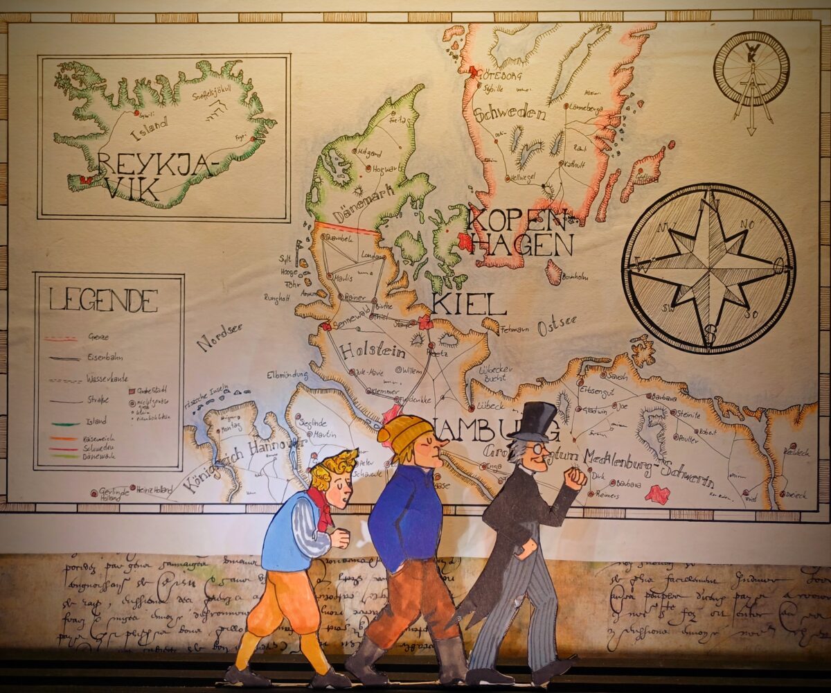 ...auf nach Island, wir reisen zum Mittelpunkt der Erde... Professor Lidenbrock und sein Neffe Axel finden ein geheimnisvolles Dokument, dass ihnen den Weg zum Mittelpunkt der Erde weist. Stehenden Fußes machen sie sich auf und steigen in die Dunkelheit eines isländischen Vulkans. Hellriegels Junior nimmt das Publikum mit auf eine turbulente Reise, durch die Evolutionsgeschichte, vorbei an mannshohen Kristallen, einem außergewöhnlichen Echo, Riesenpilzen und einem Vulkanausbruch.